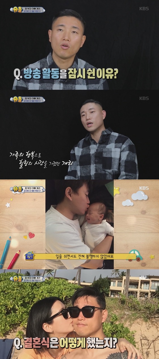 개리는 "어떻게 보면 육아휴직이 되어버린거다. 일을 쉬면서도 전혀 불행하지 않았다. 집에 오면 좋았다. 진짜 행복이 가까운 곳에 있다는 걸 느꼈다"고 설명했다.