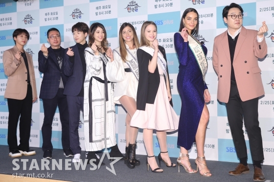 5일 오전 서울 마포구 상암동 SBS 프리즘타워에서 SBS 플러스 새 예능프로그램 '맨땅에 한국말' 제작발표회가 열렸다. 이날 제작발표회에는 김태형 SBS 플러스 국장을 비롯해, 개그맨 이휘재, 가수 정세운, 미녀 4인방인 나탈리아(한국명 나달리), 페이스(한국명 이유정), 뷔락(한국명 유라), 다이아나(한국명 미소), 한국어 선생님 장휘성이 참석했다.