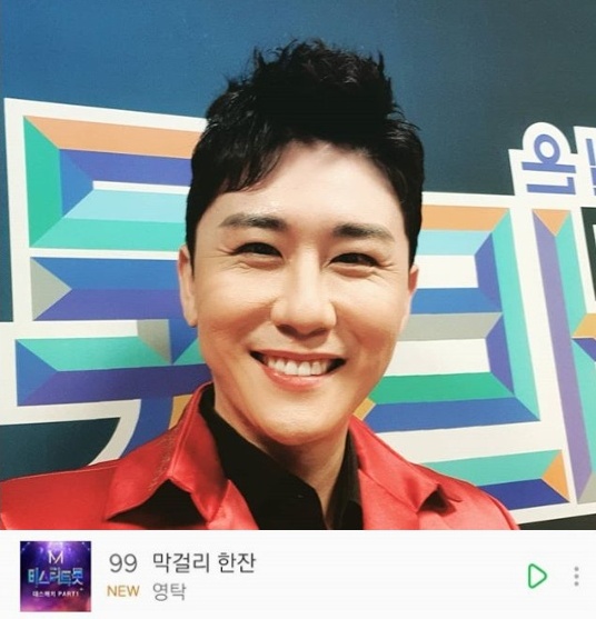 영탁은 한 음원 사이트에서 자신의 곡 '막걸리 한 잔'이 음원 순위 99위를 기록하자 캡처해 사진을 올렸다.