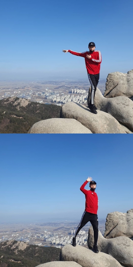 공개된 사진 속 신성은 용봉산 정상에서 '미스터트롯'에서 했던 댄싱퀸 무대를 연상케하는 포즈를 취했다.