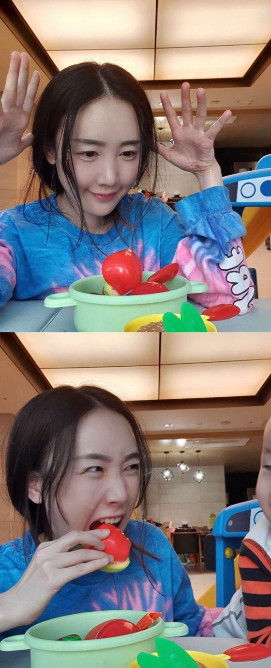 별은 12일 자신의 인스타그램에 "다둥이집 엄마의 흔한 일상. 목마 태우기, 머리 끄댕이 잡혀주기, 소꿉놀이 한상차림에 놀라주기, 차려준 거(장난감) 맛있게 먹어주기. 하얗게 불태웠다"라는 글과 함께 사진을 게재했다.
