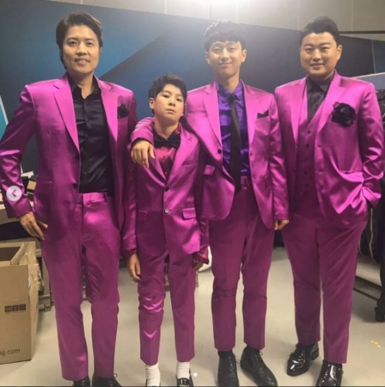공개된 사진 속 김호중은 '패밀리가 떴다' 멤버 정동원, 고재근, 이찬원과 함께 나란히 앉아 훈훈한 분위기를 자아내고 있다. 네 사람은 무대에 오르기 전에도 대기실에서 함께 밝게 웃으며 긴장을 달래는 모습으로 완벽한 케미를 자랑했다.
