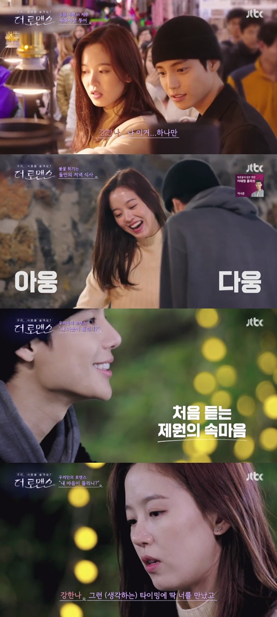 20일 오후 방송된 JTBC 예능프로그램 '더 로맨스'에서는 시나리오 작가로 변신해 각자 준비해온 시놉시스를 공유하는 두 커플(김지석-유인영, 강한나-정제원)의 이야기가 그려졌다.