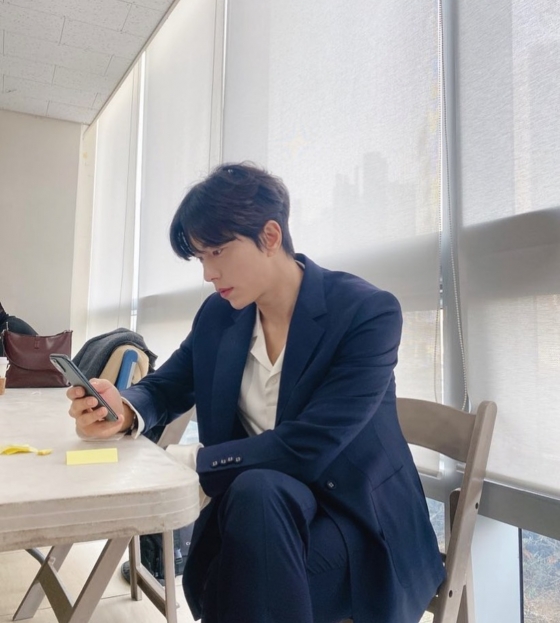 공개된 사진 속에는 수트를 입은 채 휴대폰을 들여다보고 있는 윤현민의 모습이 담겨있다.