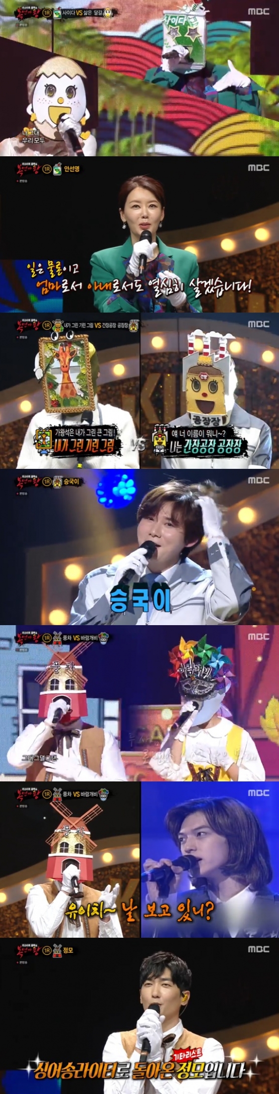 1라운드 두 번째 대결에서는 '내가 그린 기린 그림'과 '간장공장 공장장'이 무대에 올랐고, 노을의 '붙잡고도'를 열창했다. '내가 그린 기린 그림'은 미성의 목소리로, '간장공장 공장장'은 허스키하고 짙은 음색을 자랑했다. 대결 결과 '내가 그린 기린 그림'이 55표로, 44표를 받은 '간장공장 공장장'을 꺾고 다음 라운드에 올랐다. 브라운아이즈의 '가지마 가지마'를 부르며 가면을 벗은 '간장공장 공장장'의 정체는 데뷔 2년차 트로트 가수 승국이였다.