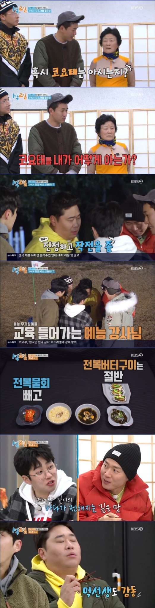 '1박 2일'에서 전남 소안도 여행을 하는 멤버들의 모습이 방송됐다.