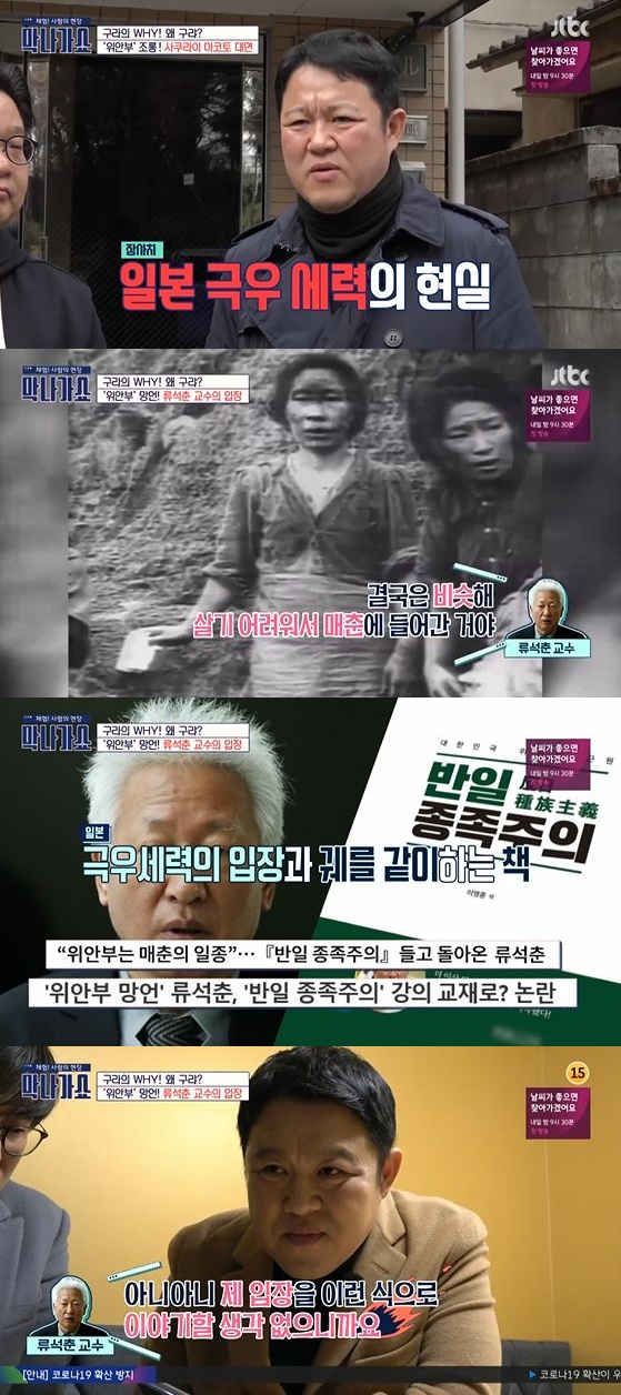 김구라가 '위안부' 망언으로 지탄을 받고 있는 한국인 옹호자들을 찾았다.