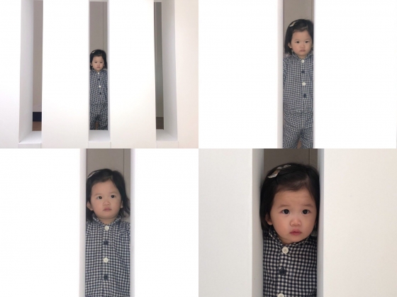 공개된 사진 속에는 봉태규의 딸 본비 양이 담겨 있다. 벽 사이 공간에 서 큰 눈망울로 비장한 표정을 지어 귀여움을 발산했다.