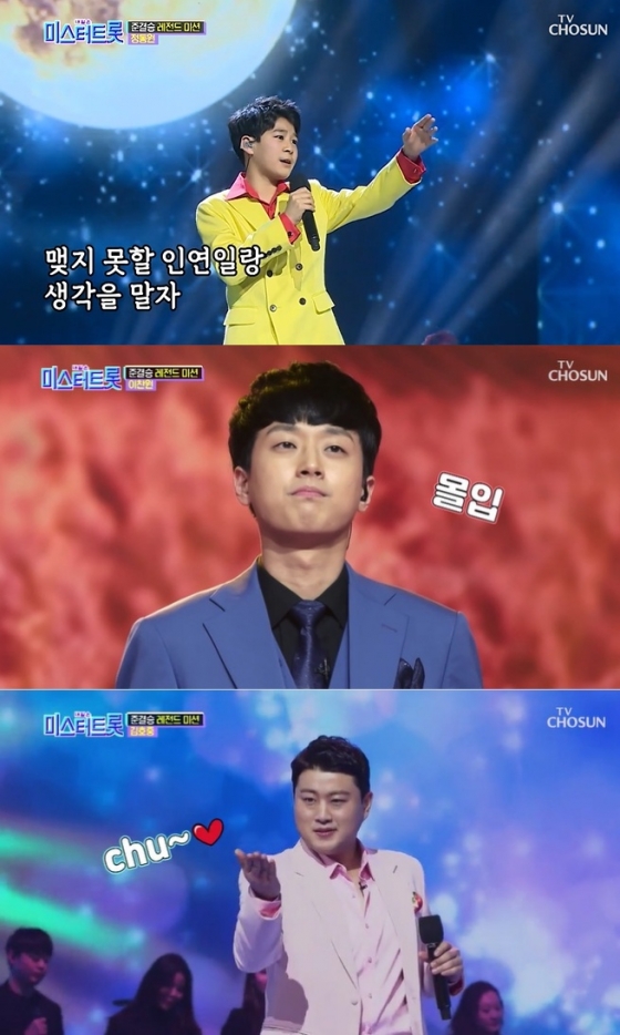 지난 27일 오후 방송된 TV조선 오디션 프로그램 '내일은 미스터트롯'에서는 준결승 레전드 미션이 펼쳐졌다. 남진, 설운도, 주현미의 히트곡으로 진행된 이번 미션은 1라운드 개인전과 2라운드 '1대 1' 듀엣 대결로 구성됐다.