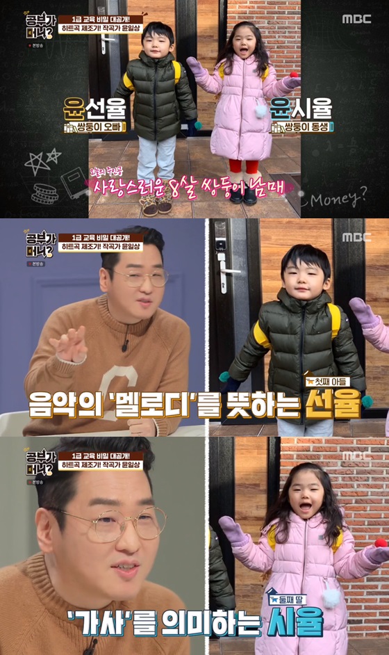 28일 오후 방송된 MBC 예능프로그램 '공부가 머니?'에서는 윤일상 가족이 출연해 확연히 다른 성향을 가진 쌍둥이 남매의 초등학교 입학 준비 고민을 털어놓았다.