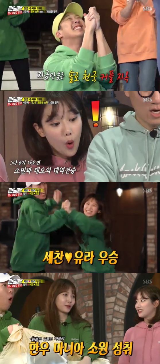 8일 오후 방송된 SBS 일요 예능 '런닝맨'에서 양세찬&유라 팀이 최종 우승하며 상품으로 한우세트를 받았다.