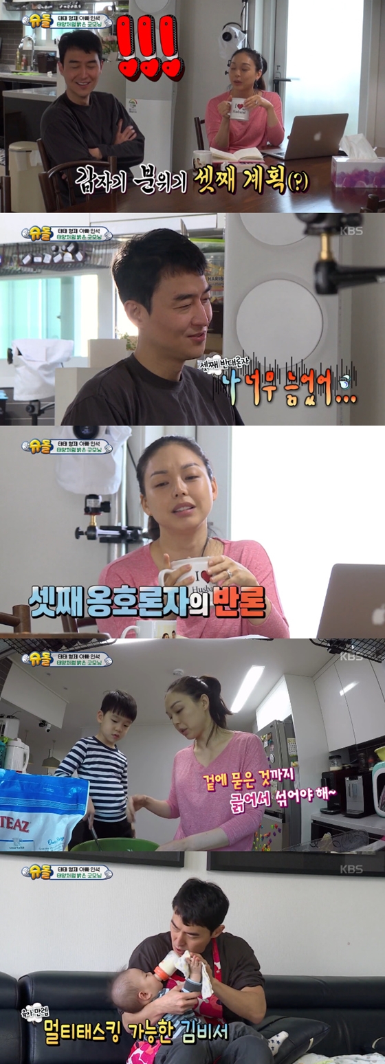 이와 함께 시청자들의 관심을 모은 '셋째 계획'에 대해서는 "제가 너무 늙었다"면서 "셋째는 협의 중인데, 요즘 저희 부부의 화두다. 결혼할 때 '아이를 넷까지 낳겠다'고 했는데, 제가 괜한 말을 한 것 같다. 하하하. (육아가) 쉽지가 않다. 둘째까지 낳고 보니 그 생각이 든다"고 털어놓았다.