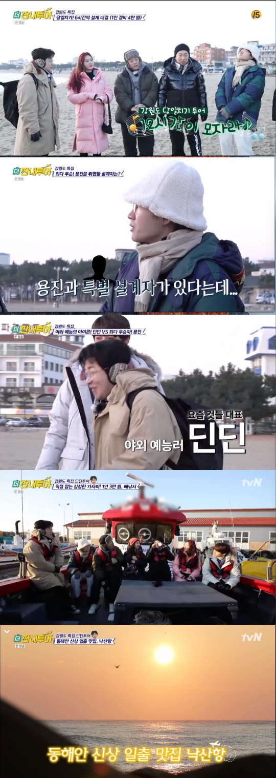 9일 오후 방송된 tvN 예능프로그램 '더 짠내투어'에서 개그맨 이용진과 가수 딘딘이 강원도 특집 당일치기 투어 설계 대결을 펼쳤다.