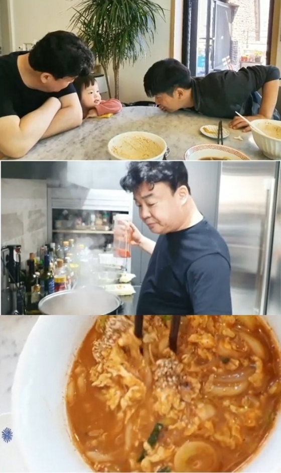 공개된 영상 속 백종원은 홍합장칼국수를 만들고 있다. 홍합을 직접 간 뒤 간을 맞추고 예쁘게 플레이팅해 보는 이로 하여금 군침을 자극하게 했다. 또 영상 말미에 나오는 홍경민과 백종원, 소유진 딸의 모습이 훈훈함을 자아냈다.