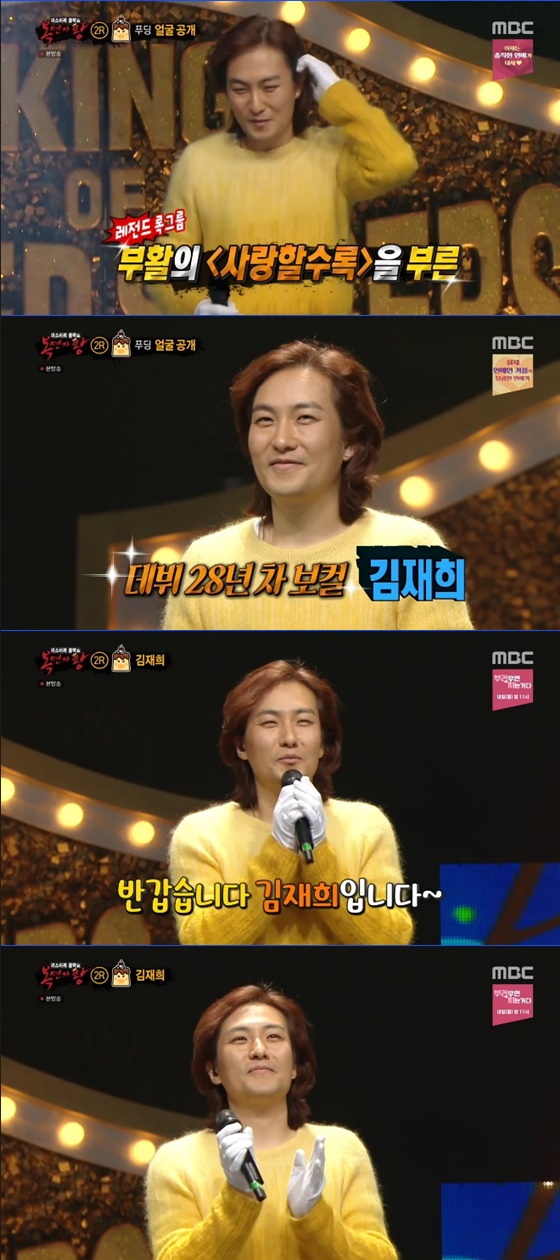 김재희가 '복면가왕'에 출연하게 된 계기는 딸 때문이었다고. 그는 "고등학교 올라가는 딸이 있다. 영화 '보헤미안 랩소디'를 같이 봤는데 그 다음부터 딸이 비틀즈 음악 듣고, 카메라로 촬영을 할 때도 레트로 필터를 끼고 사진 찍었다. 그래서 '너 이런 게 좋으니?'라고 물었더니 '아빠 이거 진짜 좋다. 예전 노래들이 주옥같이 들린다'고 했다. 그래서 음악에는 장르도 없는 것이고, 음악이 좋으면 하면 되는데 굳이 '프레임에 갇혀서 안 했었구나' 후회스럽고 딸한테 미안하더라"고 전했다.