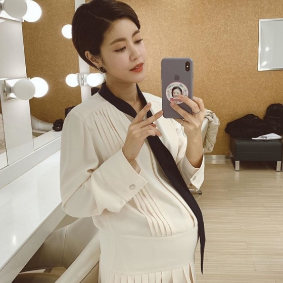 공개된 사진 속 이윤지는 방송 촬영을 앞두고 대기실에서 D라인 인증 사진을 찍고 있다. 이윤지는 오는 4월 둘째 라돌(태명)이의 출산을 앞두고 있다.