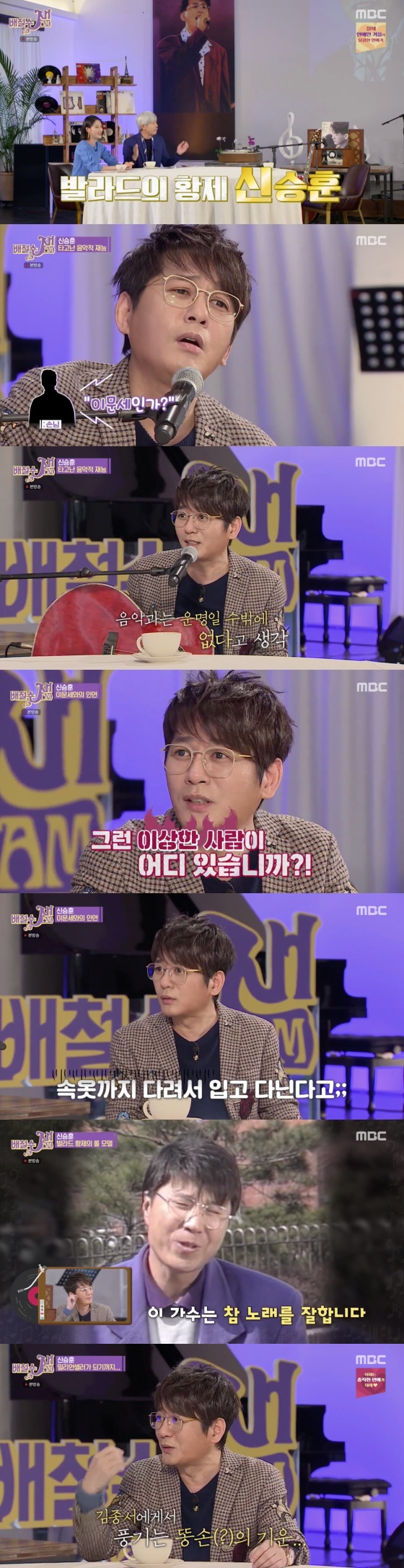 '메이크업 품앗이' 에피소드도 공개했다. 신승훈이 "故신해철이 메이크업을 해줬는데 너무 마음에 들었다. 이후 김종서를 봤는데 메이크업이 너무 별로더라. 그래서 내가 해줬다"라고 말했다. 배철수는 계속 나오는 화장품 용어에 이해하지 못하는 반응을 보여 웃음을 자아냈다.