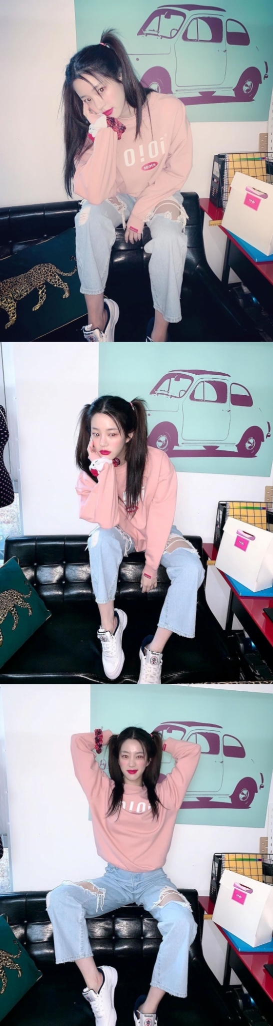 공개된 사진 속 이유비는 분홍색 티에 연한색 청바지 코디를 선보여 봄향기가 물씬 느껴지는 코디를 선보였다. 하지만 찢어진 청바지로 동시에 '힙'한 코디를 선보여 상큼한 매력을 뽐냈다.