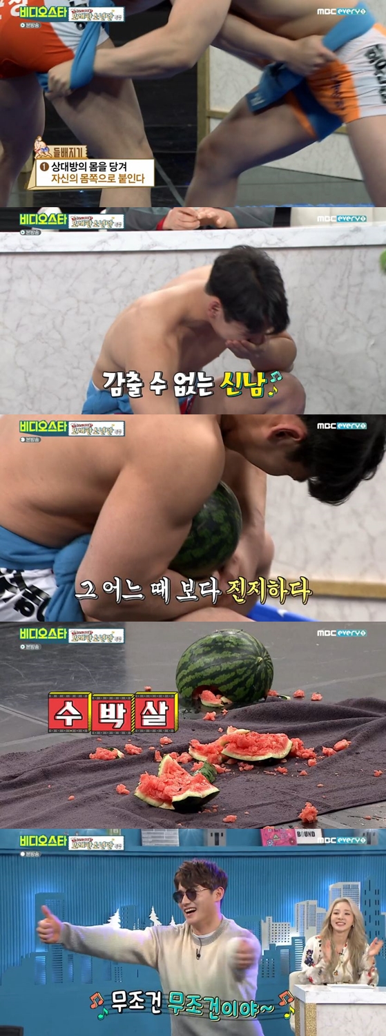 선수들은 힘자랑을 위해 수박을 팔 힘으로 깨려 시도했지만 자신만만하던 막내 허선행까지 실패하고 말았다. 하지만 큰형 박정우 선수가 손으로 수박을 격파해 모두를 놀라게 했다.