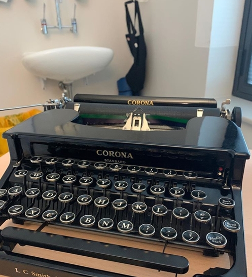 공개 된 사진 속 타자기의 이름이 '코로나'(CORONA)라는 것이 눈에 띈다.