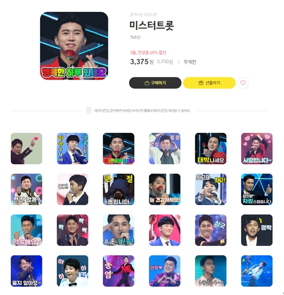 TV조선 '내일은 미스터트롯'(이하 '미스터트롯')의 톱7으로 구성된 카카오톡 이모티콘이 출시됐다.