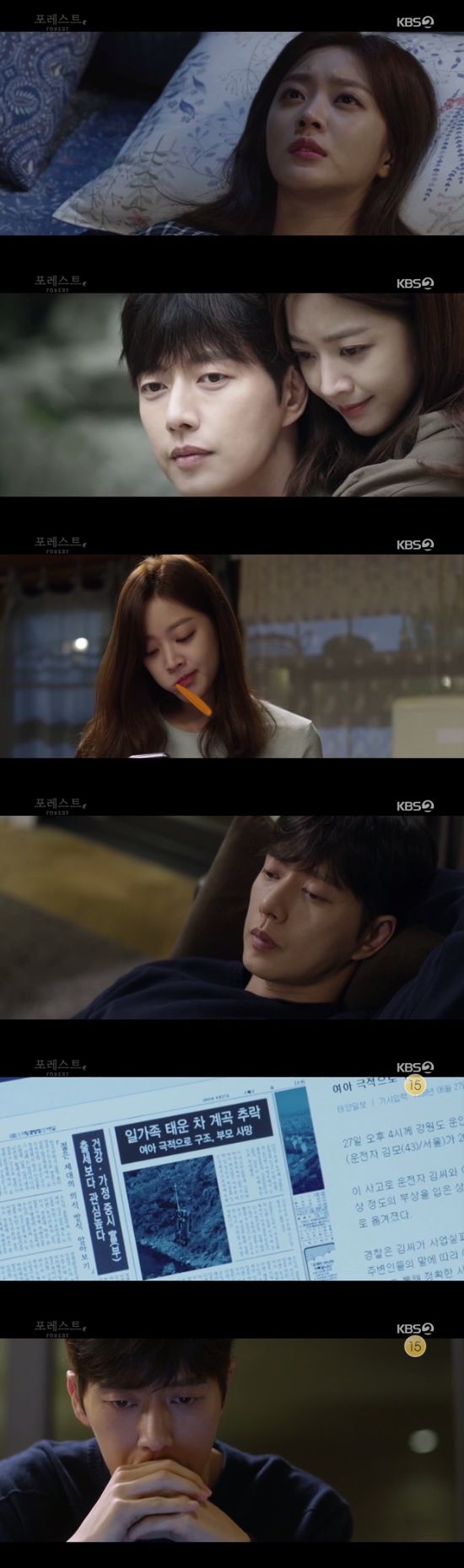 18일 오후 방송된 KBS 2TV 수목드라마 ‘포레스트’(극본 이선영 연출 오종록)에서 강산혁(박해진 분)과 정영재(조보아 분)이 서로 그리워하지만 외면하는 장면이 그려졌다.