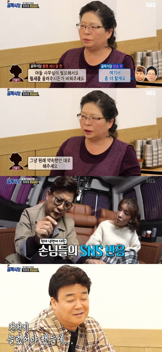 18일 방송된 SBS 예능프로그램 '백종원의 골목식당'에서 청파동의 회 냉면집의 변해버린 모습이 담겼다.