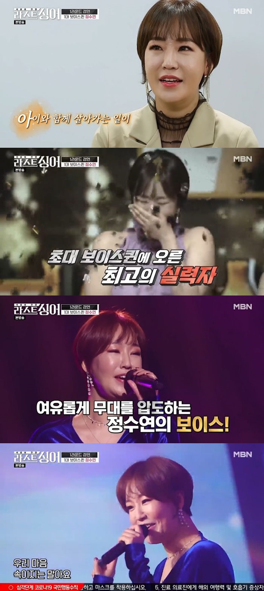 19일 오후 방송된 MBN 예능프로그램 '여왕의 전쟁:라스트 싱어'에 출연한 정수연은 '보이스퀸' 우승에도 불구하고 "계속 올라가고 싶다"는 포부를 보였다.