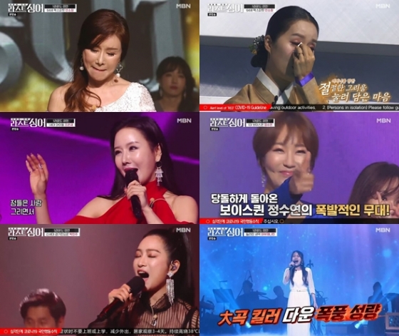 성은은 "트로트로 성공을 하지 못하고 힘든 시기에 공황장애도 왔다"라며 "2년간 고생을 많이 했다"고 고백했다. 경기민요를 하던 박민주는 트로트를 시작한 지 2개월 밖에 안된 풋풋한 모습으로 북 치기 퍼포먼스를 선보여 완벽한 무대를 보였다.