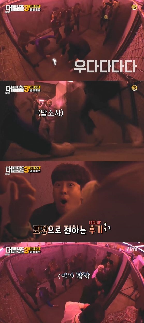 22일 오후 방송된 tvN 주말 예능 '대탈출 시즌 3' (이하 '대탈출')에서는 강호동, 김종민, 김동현, 신동, 유병재, 피오가 좀비 미로에서 탈출하기 위해 열쇠를 찾아 헤맸다.