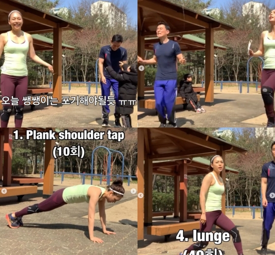 공개된 영상 속 안젤라박은 김인석과 함께 전신 운동인 플랭크 숄더 탭 운동과 앉아서 하는 복근 운동을 하고 있다. 또 줄넘기를 이용해 이단 뛰기를 하거나 런지 운동을 하며 건강미를 발산했다.