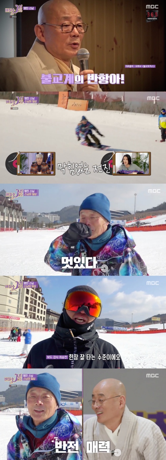 '배철수잼' 명진 스님, 스노보드 '힙한' 취미..MC들 감탄