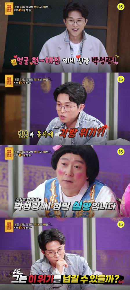 예비신랑인 방송인 박성광이 벌써부터 각방 위기에 처했다.