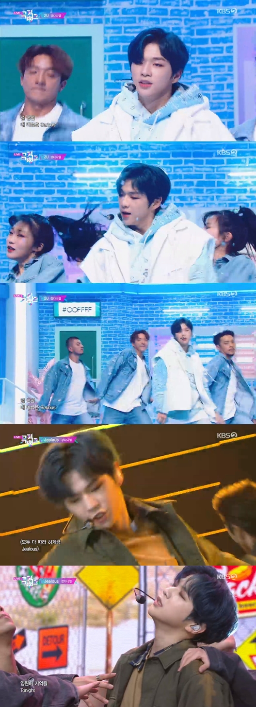 이날 강다니엘은 '2U'와 'Jealuous' 두 곡으로 무대에 올랐다. '2U'는 통통튀는 신스 사운드와 봄바람을 연상시키는 경쾌한 리듬이 돋보이는 곡. 특히 '2U'는 푸른색 무대에서 밝은 미소를 짓는 강다니엘의 모습이 어우러지며 청량감을 선사했다.