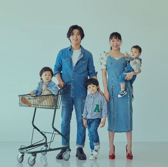 공개된 사진 속 정주리는 남편과 삼둥이와 함께 사진을 찍고 있다. 청으로 드레스 코드를 맞춘 후 행복한 미소를 짓는 가족에 흐뭇한 미소가 지어진다.