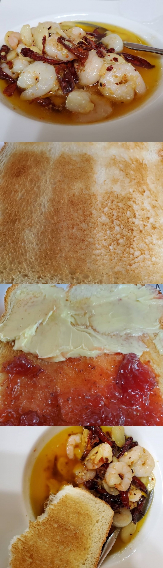 공개된 사진 속에는 감바스와 딸기잼 버터 식빵이 담겨 있다. 먹음직스러워 보이는 식단이 침샘을 자극한다.