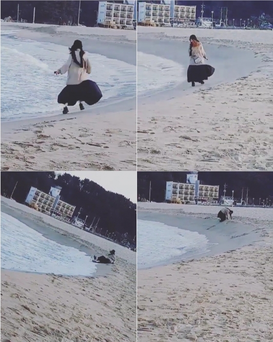 공개된 영상 속 서정희는 자신의 친구들과 해변가에 놀러 가 즐겁게 놀고 있다. 친구들은 바다를 뛰어다니는 서정희를 촬영했고, 서정희는 해변을 돌다 밀려오는 파도를 피하지 못하고 물을 맞은 뒤 넘어졌다. 하지만 이들은 그런 상황을 즐겁게 웃으며 넘겼다.
