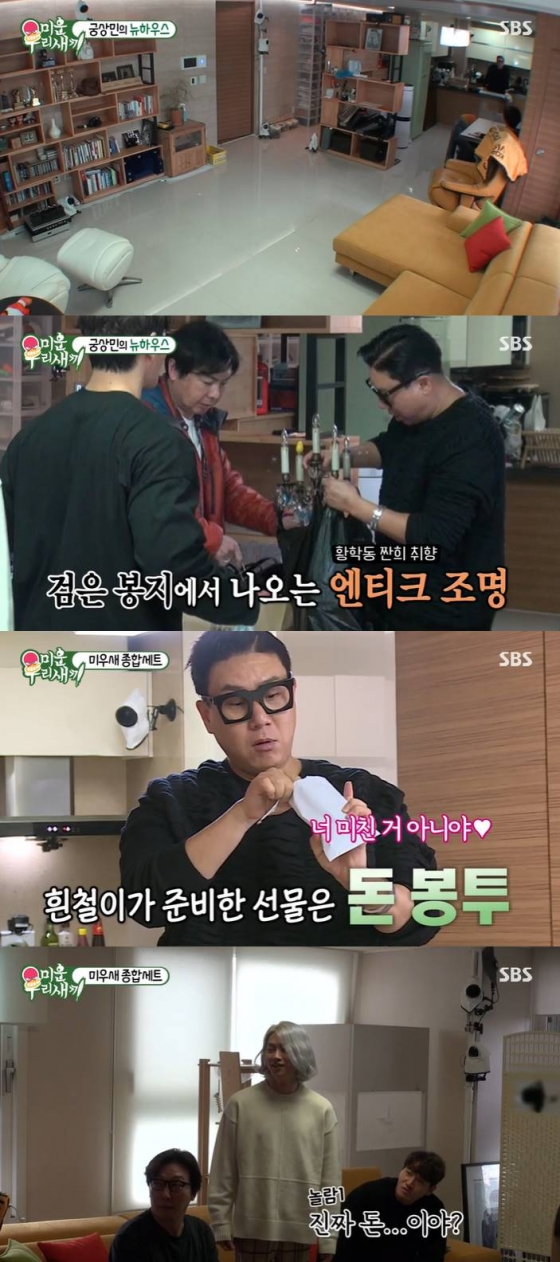 이상민은 "1년에 한 번씩 이사하니까 이제 도망다니는 것 같아"라며 집 없는 이의 설움을 토로했다. '미우새' 멤버들 중 임원희는 엔티크 조명, 김종국은 휴지, 김희철은 돈봉투를 집들이 선물로 건넸다.