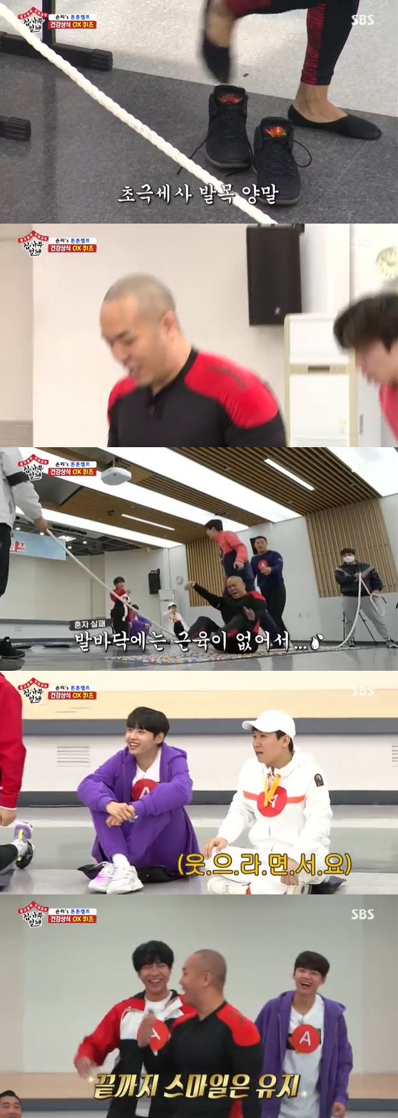 이날 사부는 면역력 강화를 위한 건강 지킴이 트레이너 숀리가 출연해 다양한 건강 정보와 운동을 전수했다. 숀리는 본격 '튼튼 캠프'에 앞서 건강상식 OX 퀴즈를 냈고 이에 맞추지 못하는 멤버는 지압판에서 줄넘기를 해야 했다.