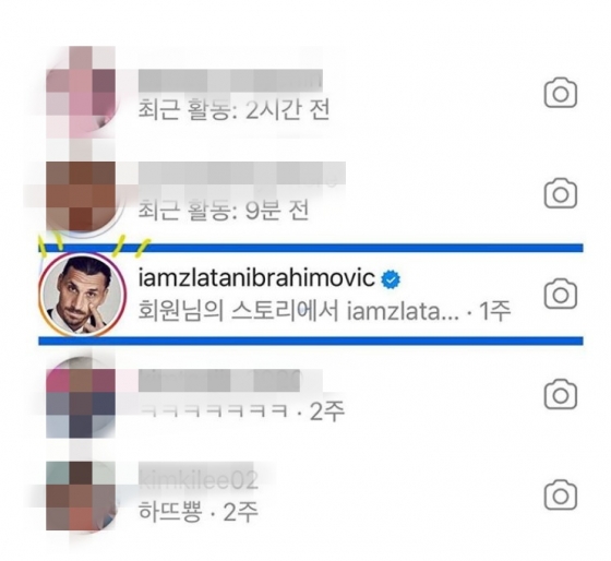 공개된 사진 속에는 즐라탄 이브라히모비치가 신현준의 인스타그램 스토리 게시글을 봤다는 알림이 캡처돼있다.