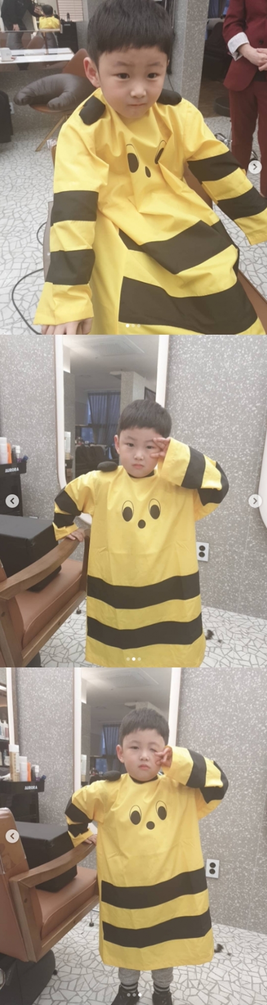 공개된 사진 속에는 장성규의 아들 하준 군의 모습이 담겼다. 하준 군은 꿀벌을 연상케 하는 큰 티셔츠를 입은 채 귀여움을 뽐냈다. 또 다른 사진 속 하준 군은 어설픈 브이 포즈를 취하며 많은 이모, 삼촌들의 미소를 자아냈다.
