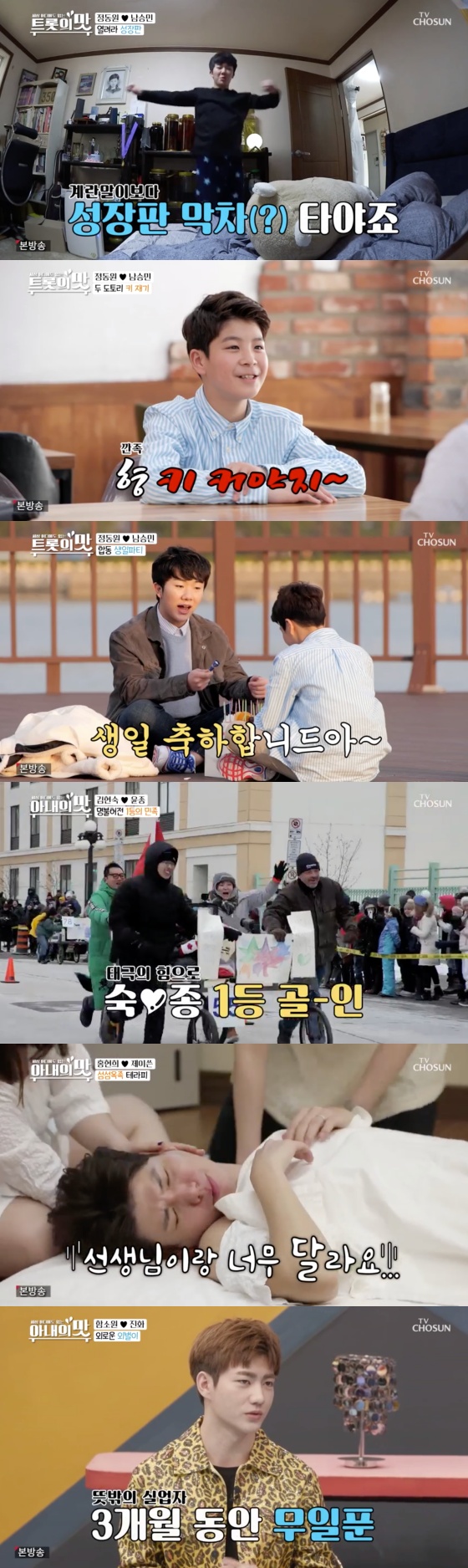 이날 방송에서 '내일은 미스터 트롯'에서 인기를 끌었던 정동원, 남승민의 만남이 담겼다. 먼저 남승민의 모습이 담겼다. 남승민은 목욕을 마치고 나와 집에 돌아와 유튜브를 켰다. 남승민은 유튜브를 보며 키 크기 체조를 했다. 이후 남승민은 마산에 놀러 온 정동원을 만났다. 남승민은 정동원을 위한 일일 가이드로 나섰다. 남승민은 정동원에게 "형 키 커야지"라며 장난을 쳤고 남승민은 "키 클 거야 이제"라고 답했다. 이후 둘은 서로의 생일 축하하기 위해 케이크를 들고 바다로 향했다. 둘은 서로에게 구성진 생일축하 노래를 불러줬다.