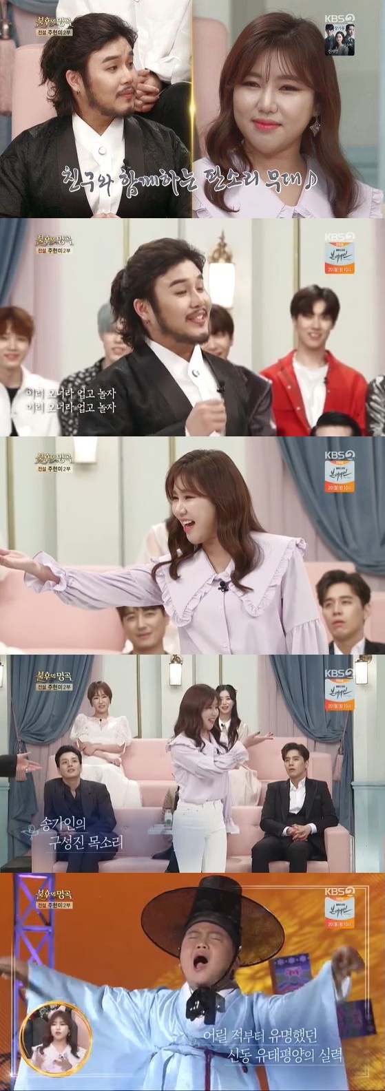 이날 방송에서 유태평양은 "송가인과 함께 무대에 오르고 싶다"라고 밝혔고 알고 보니 두 사람은 과거 국악을 함께 한 절친 사이였다. 유태평양은 대기실에서 송가인과 함께 판소리 '춘향가' 중 가장 유명한 부분인 '사랑가'를 열창하며 분위기를 뜨겁게 달궜다.
