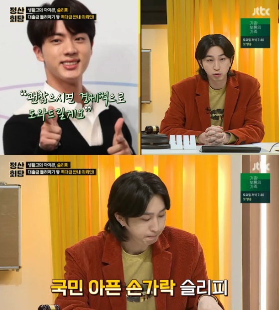 21일 오후 방송된 종합편성채널 JTBC 예능프로그램 '정산회담'에서는 의뢰인으로 슬리피가 출연했다. 연예계 산전수전 계보로 얽히는 대선배 김종민과 파산 전문 변호사 고승우가 스페셜 돈반자로 참여해 안건을 해결하는 데 도움을 줬다.