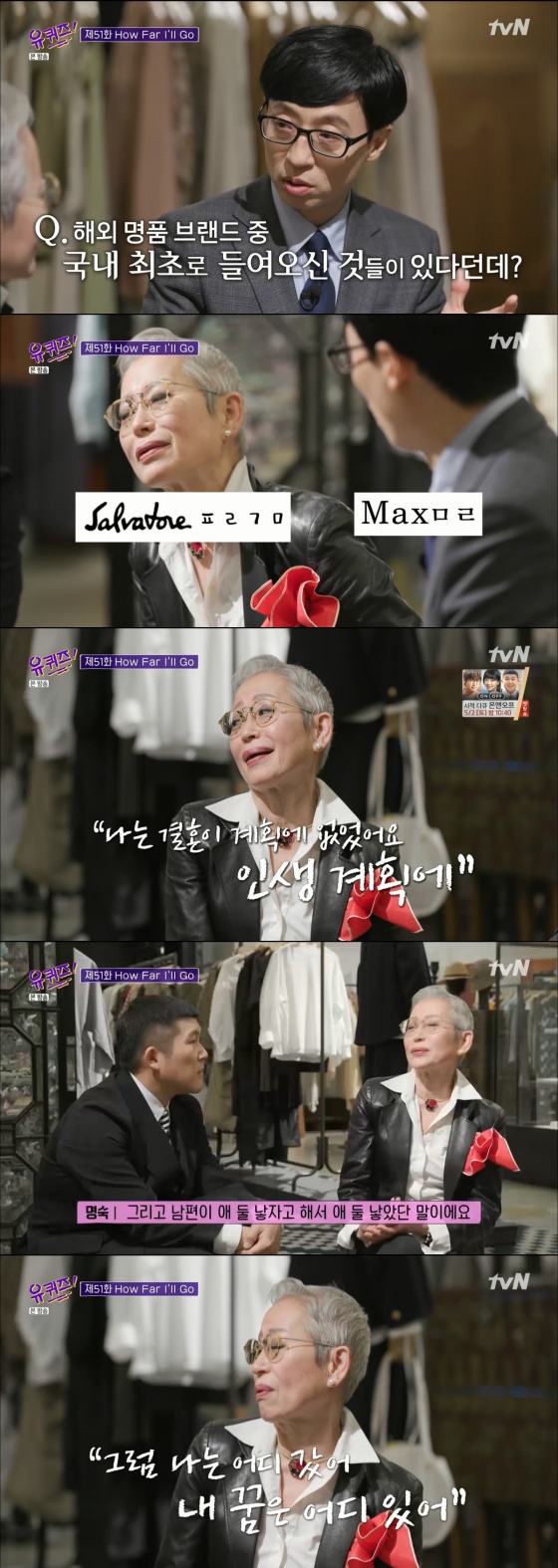 마지막으로 유명 유튜버가 된 패션 바이어 장명숙 씨가 출연했다. 그는 "키 작아도 상관없다. 뚱뚱해도 상관없다. 입고 싶은 것부터 입으세요" 등 인생 조언을 통해 시청자들에게 감동을 선사했다.