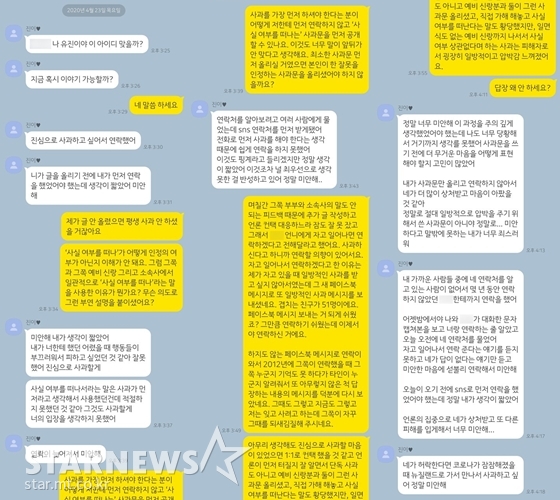 이어 그는 "12년간 깊숙이 자리잡힌 상처가 하루 저녁에 아물지 않을 거라는 것을 알고 또 지금 제 마음도 시원한 마음보다는 복잡미묘한 마음이 크기 때문에 여러분의 우려대로 바로 김유진 PD의 사과를 수락하고 용서하지는 않을 생각이다. 조금 더 제 마음이 편해지고, 후련해지면 그때 용서 할 수 있을 것 같다"라며 "그래도 이번 일을 통해서 12년 동안 시종일관 남 눈치를 보고 인간관계에 있어서 틀어짐이 있거나 피해를 받았을 때 항상 제 탓 먼저 했던 성격이 조금이나마 긍정적으로 바뀔 수 있을 것 같아서 기쁘다"라고 전했다.