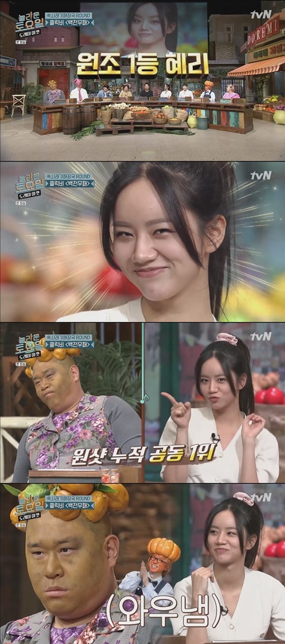 '놀라운 토요일' 혜리가 클릭비의 '백전무패' 받아쓰기 원샷의 주인공이 됐다.