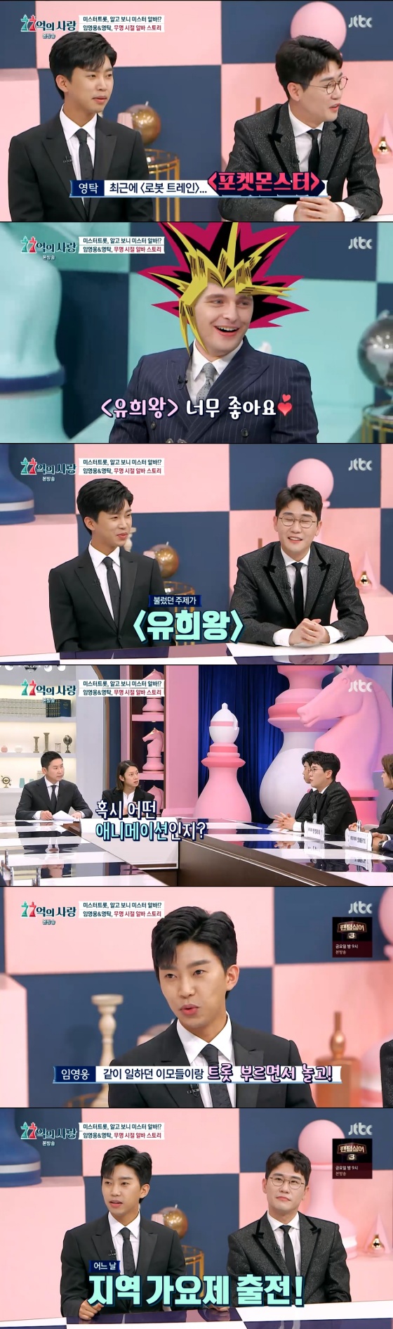 27일 오후 방송된 JTBC 예능 프로그램 '77억의 사랑'에서는 TV조선 오디션 프로그램 '내일은 미스터트롯'에서 큰 사랑을 받은 임영웅과 영탁이 게스트로 출연했다.