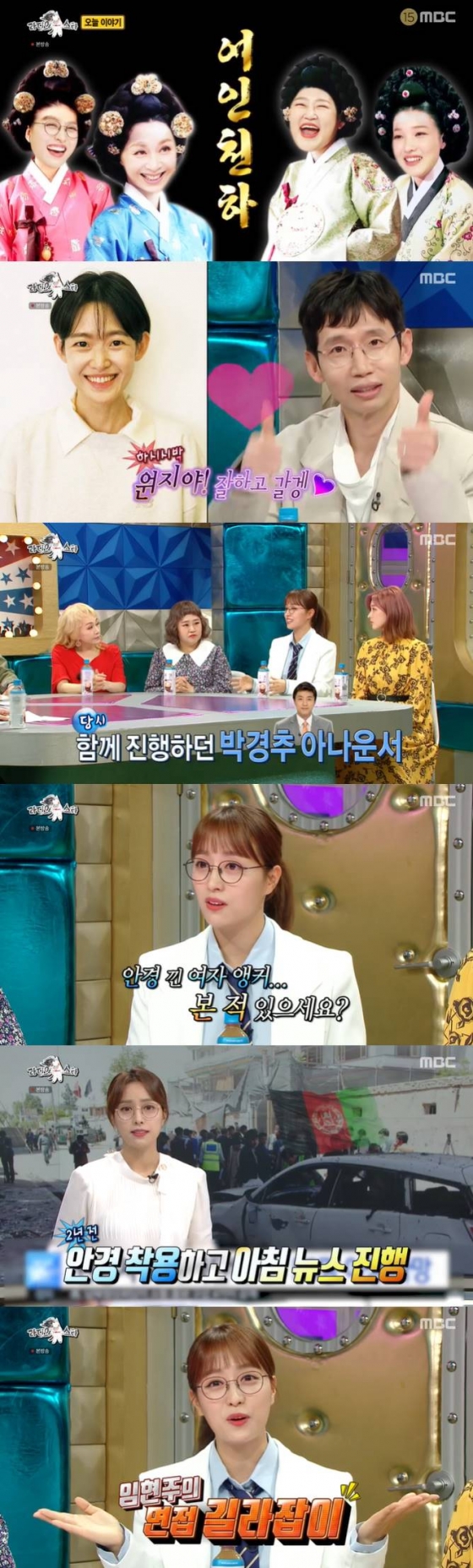 이날 임현주는 '안경 아나운서'로 등장해 눈길을 끌었다. 2년 전 아침 뉴스에서 안경을 쓴 뒤 화제를 모았던 임현주는 "그게 낯선 모습이었나 보다. 그날 하루종일 뉴스에 났다. 전 세계 외신들에서 연락이 왔다. 안경 하나로 상상도 못한 인터뷰를 했다"고 말했다. 이어 그는 "BBC, 뉴욕타임즈, 사우디아라비아, 프랑스, 독일, 싱가폴, 대만, 홍콩 등에서 연락이 왔다. 안경을 끼는 게 익숙한 나라에선 '이게 왜 이슈냐'며 궁금해했다"고 했다.
