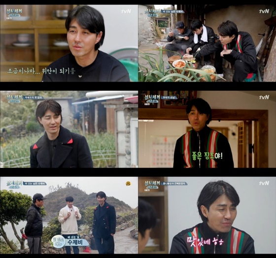 이날 5년 만에 '삼시세끼 어촌편 5'에 복귀한 세 사람을 환영(?)한 건 악천후였다. 죽굴도에 들어가자마자 쏟아진 폭우는 모두를 힘들게 만들었으나, 삼형제는 거뜬히 한 끼를 해결했다.